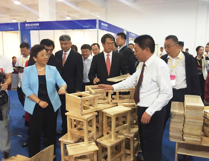 黑龙江省委常委、副省长贾玉梅莅临中林集团国林木业城展区参观指导,在屈作新总经理的陪同下,观看了公司宣传片,听取了园区在专业化木材加工、综合化平台服务等方面介绍。屈作新表示,国林木业城在各级政府的大力支持下,将进一步推动园区产业向专业化、集约化、规模化发展,继续为黑龙江的林业产业转型升级做出努力。贾玉梅副省长参观了展区内各园区企业的展品,并详细了解了产品工艺和销售渠道,对园区内产业链实现了由粗加工、半成品到精深加工的产业升级表示充分肯定。