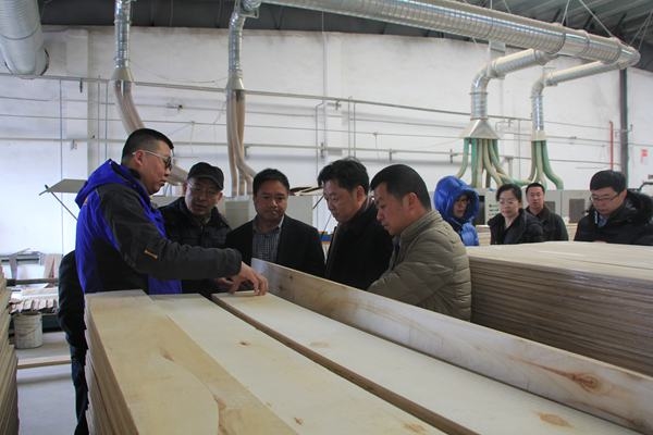 3月7日,江山市人民政府副市长郑贤文,上海胜握胜林业有限公司副总经理罗曼一行十人到国林木业城调研。
