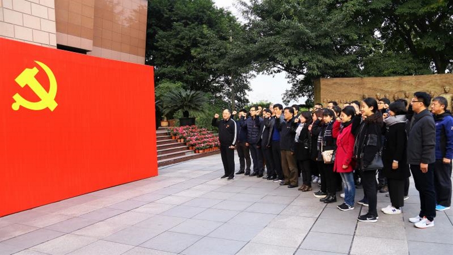 在邓小平故居,党员们瞻仰了邓小平铜像并敬献花篮,向邓铜像鞠躬致敬,缅怀我党杰出领袖。在邓小平故居陈列馆,结合展出手稿、图片和视频等历史资料,大家回顾了中国改革开放的总设计师邓小平同志在革命时期、建国初期和改革开放三大历史阶段建立的丰功伟绩,深刻感悟了邓小平为中国共产党事业奋斗一生的曲折经历和改革开放对国家带来的巨大变化。 在红岩革命纪念馆,党员们了解了中共中央南方局的发展历程,参观了国共合作时期的八路军驻重庆办事处革命遗址,见证了老一辈革命家建立的不朽功勋。在红岩革命纪念馆前,刘连军带领全体党员和入党积极分子面对党旗重温入党誓词,庄严宣誓。